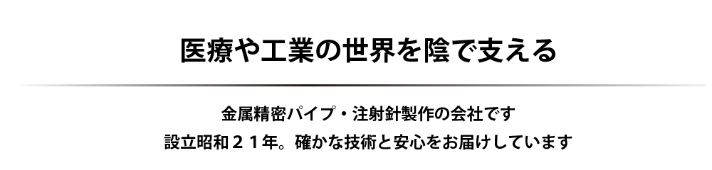 | 事業内容 | 一般注射針、特殊注射針、金属精密パイプ(ステンレス・真鍮・銅)製造 |